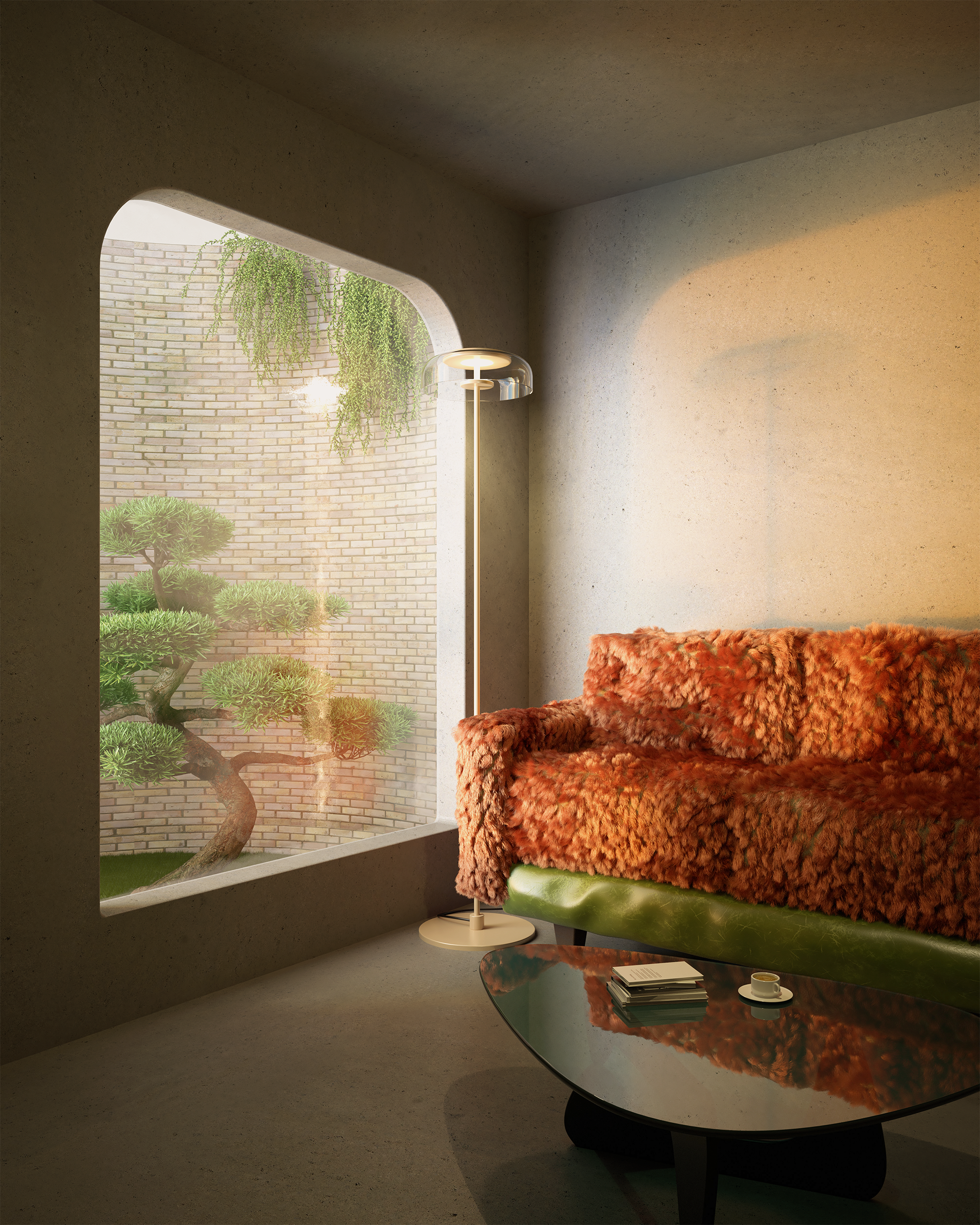 INTERIORS SILENCE IN SOFT FORMS SOFT GEOMETRY BRUTALIST SERENITY MONOLITH RETREAT CLIFFSIDE ATRIUM VOlcano House TACTILE SILENCE MINIMALIST BATHROOM VISUALISATION GOLDEN HOUR KITCHEN WOVEN NATURE BETWEEN WALLS